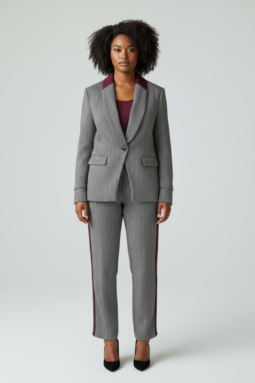 Giacca 1 bottone, rever a scialla con colletto bordò