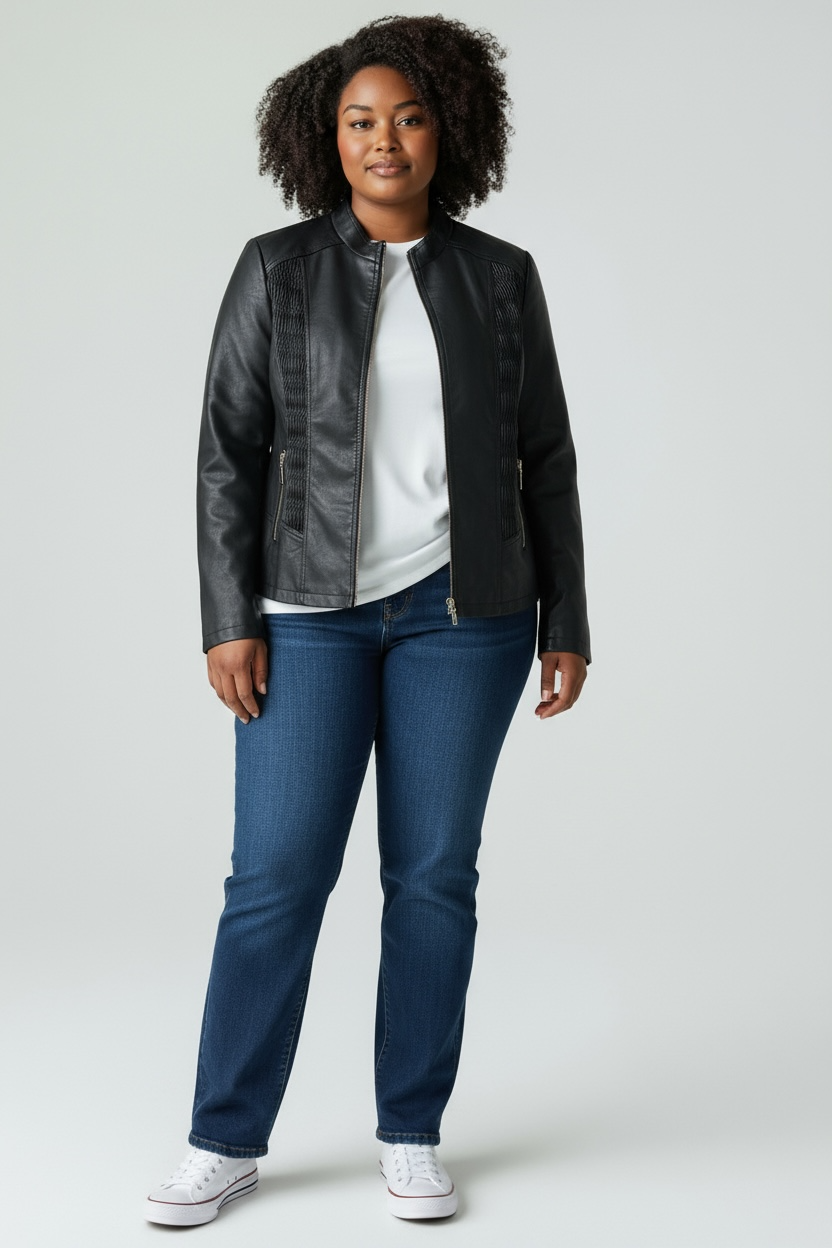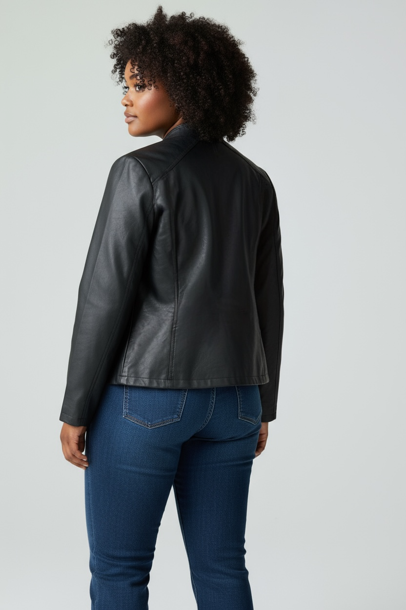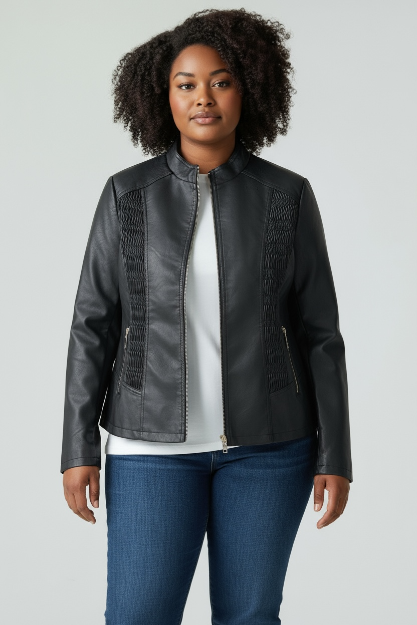 Giubbino in ecopelle con zip ed arricciatura ai lati