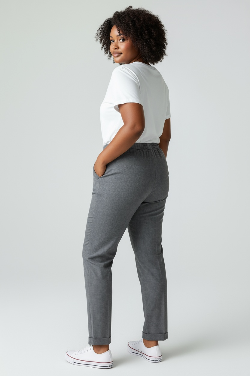 Pantalone a sigaretta con bustino elastico dietro, tasche e risvolto
