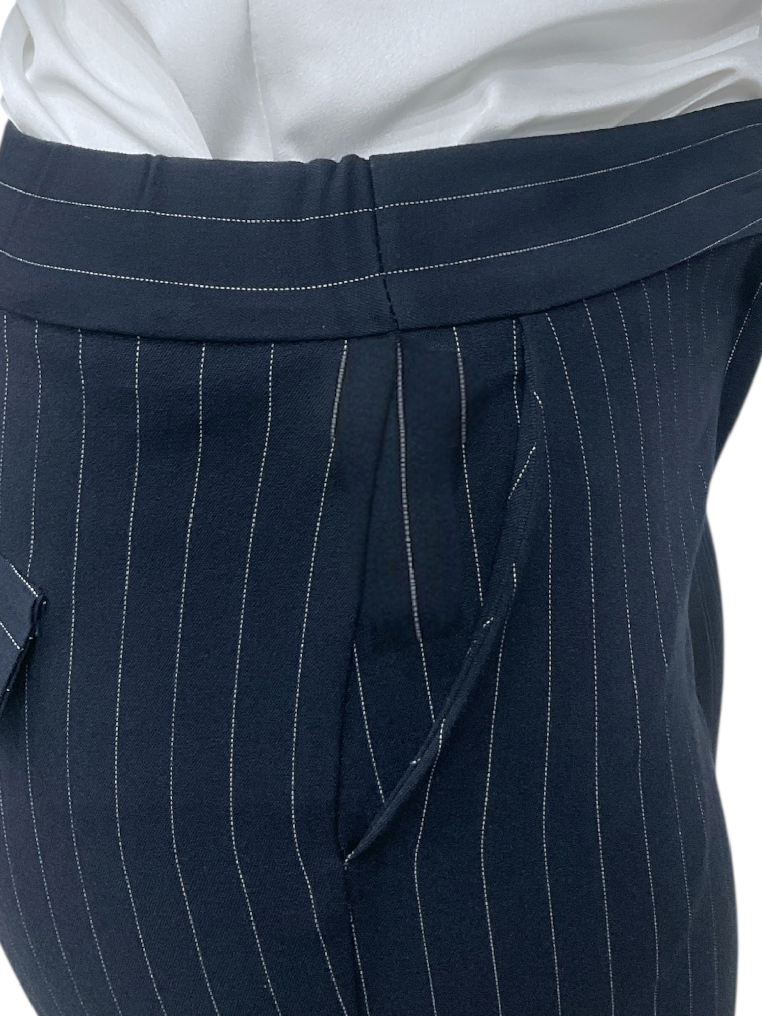 Pantalone gessato a sigaretta con tasche e dettaglio pattine dietro